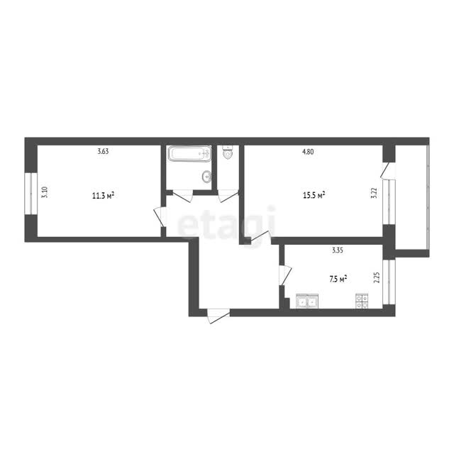 - Общая площадь46.9 м²