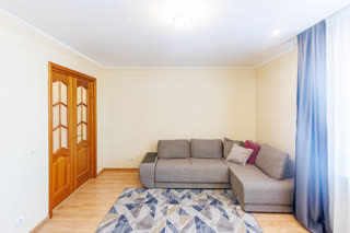 В квартире сделан косметический ремонт. В прихожей и на кухне на полу плитка, в остальных комнатах ламинат. Стены выровненные, оклеены обоями. Потолки натяжные со встроенными светильниками. Окна пластиковые, лоджия остеклена. Санузел раздельный, что очень удобно в процессе проживания. На полу и стенах плика, установлена качественная сантехнка.
