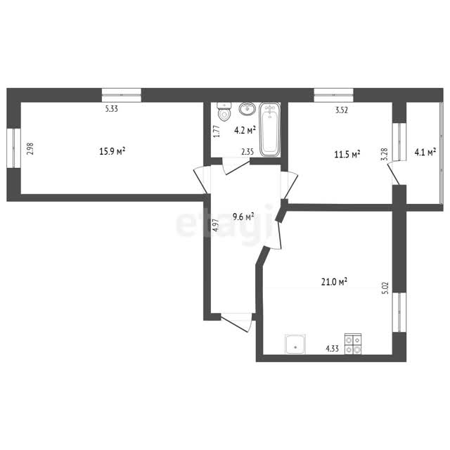 - Общая площадь59.6 м²