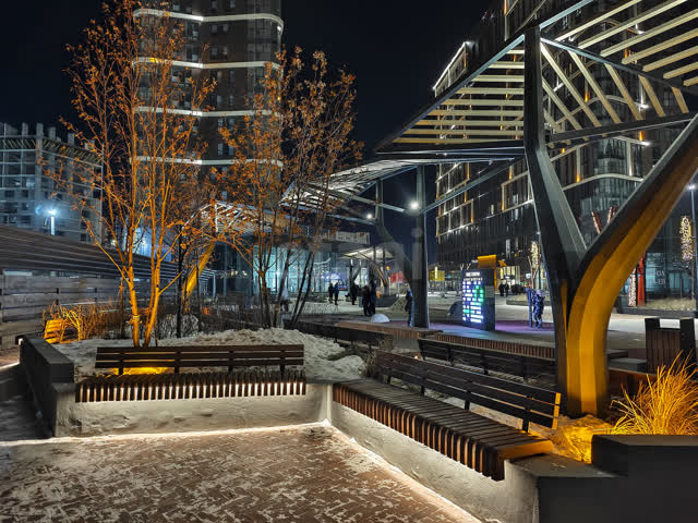 В авторском квартале предусмотрено три уровня благоустройства территории: Первый уровень — это просторные прогулочные аллеи в центре квартала и вдоль улицы Северная. Второй и третий уровень — это «парящие дворы» на стилобате 2 этажа и на эксплуатируемой кровле 19 этажа с озеленением, местами для отдыха и занятий спортом.