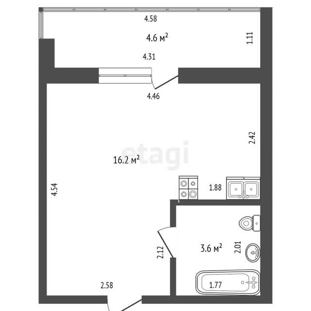 Студия площадью 24.1 кв. м. (15.9 кв. м. комната, 3.5 кв. м. санузел и 4.7 кв. м. балкон) выполнена в улучшенной черновой отделке, что дает вам возможность создать интерьер своей мечты. Просторный балкон с остеклением станет отличным местом для утреннего кофе или вечернего отдыха. Высота потолков 2.7 метра добавляет ощущение простора и света.
