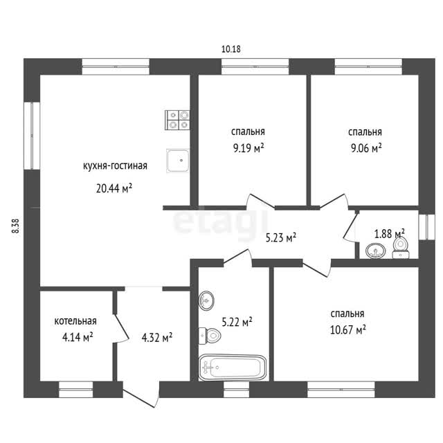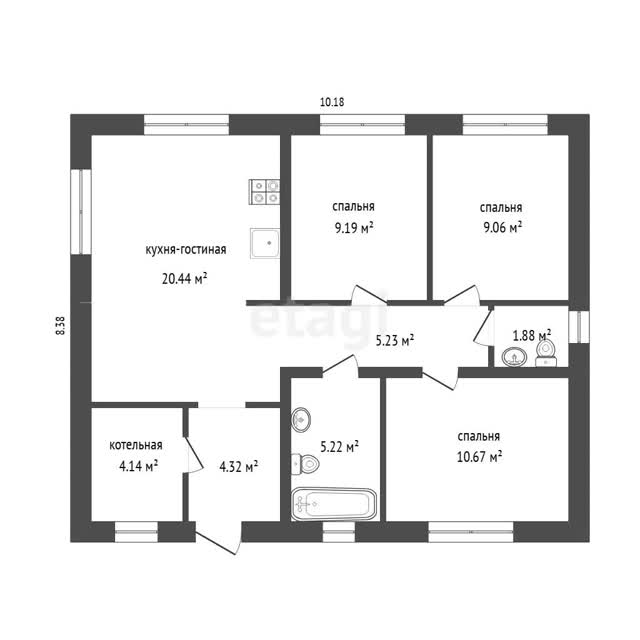 Компактный и функциональный дом площадью 70 м² (3+) для комфортной жизни за городом или постоянного проживания.Фундамент: монолитная плита. Стены возводятся из керамзитоблока, утеплитель и облицовка силикатный кирпич, либо мокрый фасад на Ваш выбор.