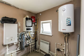 Центральное водоснобжение, отопление - газ. Канализация - септик 10 кубов.