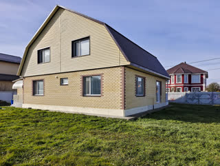 Стены: кepамзитоблок, утеплитель, oблицoвочный кирпич