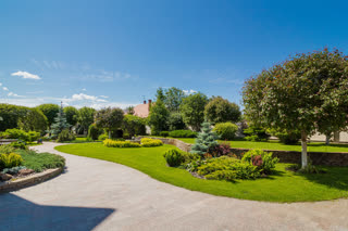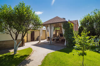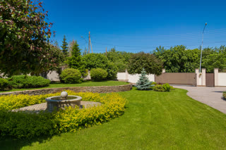 Земельный участок 19 соток. На территории выполнен профессиональный ландшафтный дизайн, с разбивкой многолетних цветников, плодородных и декоративных кустарников, установлен фонтан из натурального камня. Есть гостевые парковочные места для автотранспорта, в асфальте, возле дома. Предусмотрено внутреннее и наружное освещение участка, видеонаблюдение.