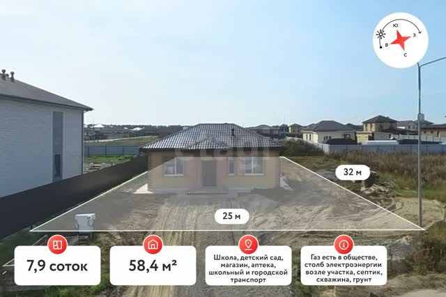 Дом, 58.4м², участок 7.9 сот.